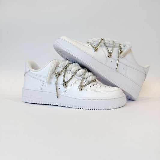 Nike Air Force 1 Low White Double Rope Laces White Silver