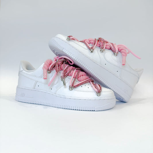 Nike Air Force 1 Low White Double Rope Laces Glitter Pink