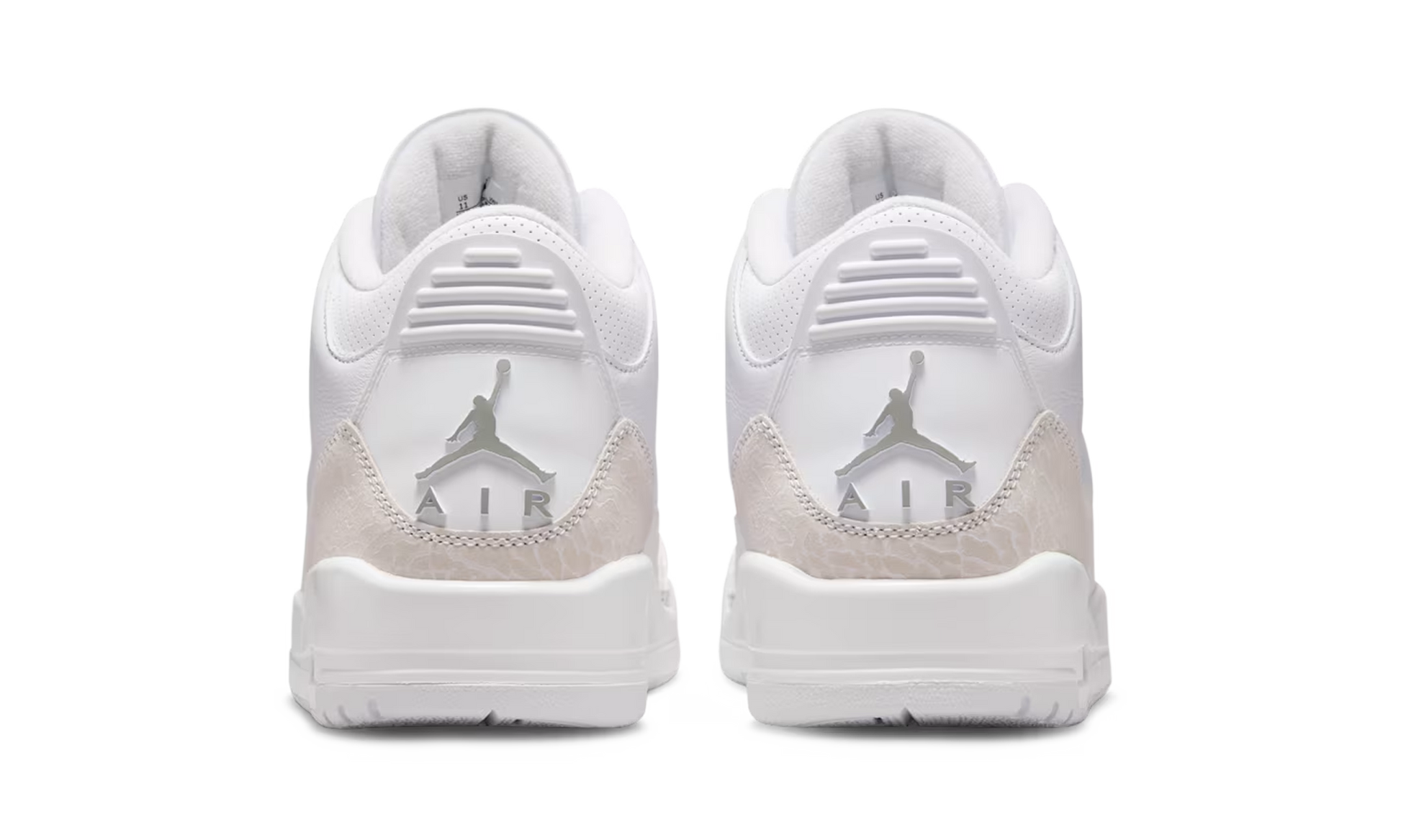 Celokožený zvršok v čistobielej farbe je doplnený o prémiové detaily v tóne Pure Platinum, ktoré sa objavujú na ikonickom elephant printe pri špičke a päte. Charakteristickým prvkom ostáva aj viditeľná Air jednotka v medzipodrážke, ktorá zabezpečuje pohodlné tlmenie. Nechýba ani Jumpman logo na jazyku a päte, symbolizujúce dedičstvo Jordanu.
