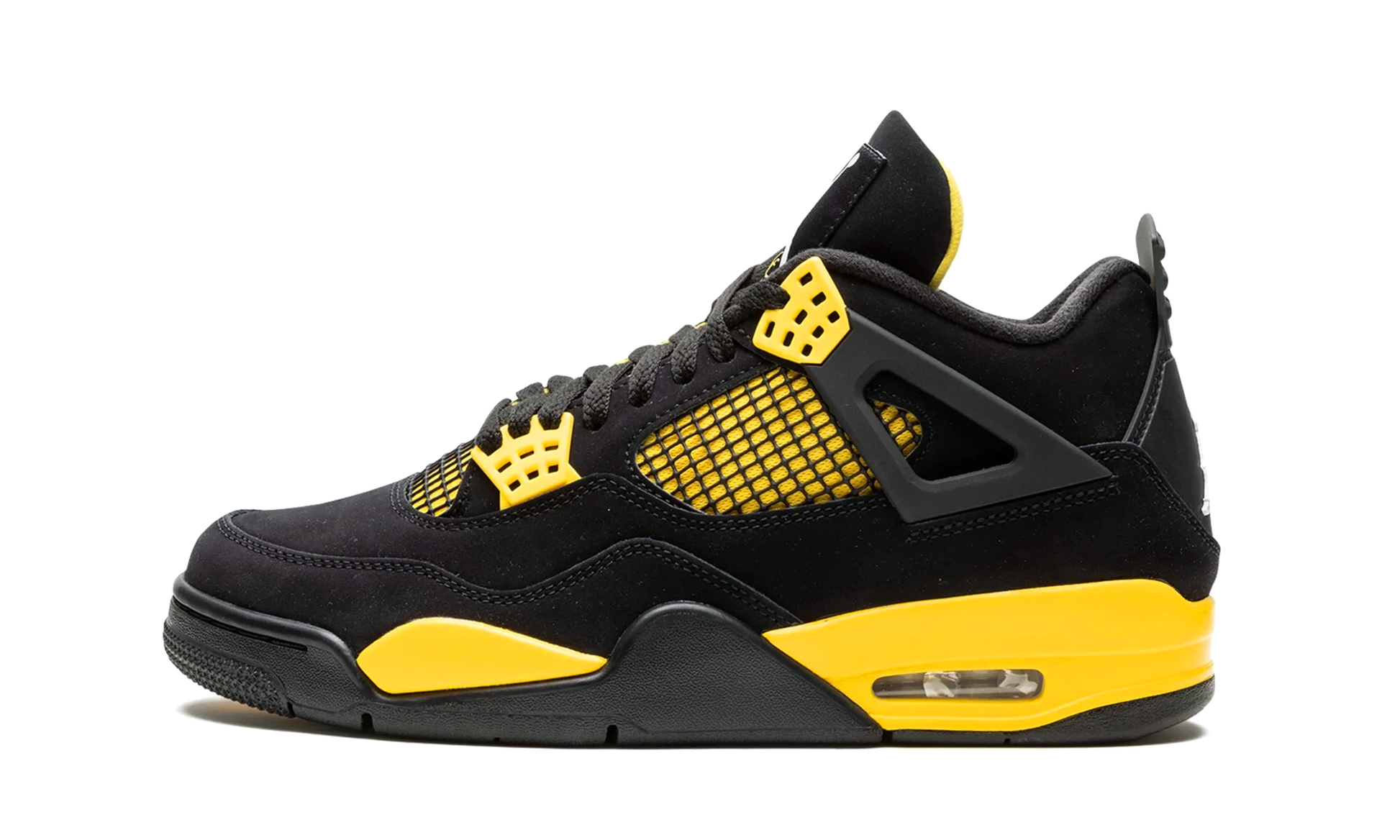 Jordan 4 Retro Thunder prináša späť ikonickú farebnú kombináciu, ktorá prvýkrát debutovala v roku 2006. Čierny nubukový zvršok kontrastuje so žiarivými žltými detailmi na medzipodrážke, očkách šnurovania a sieťovine, čím vytvára výrazný a energický look. Klasická silueta Air Jordan 4 je doplnená o odpruženie Air-Sole pre komfort a gumovú podrážku pre stabilitu.